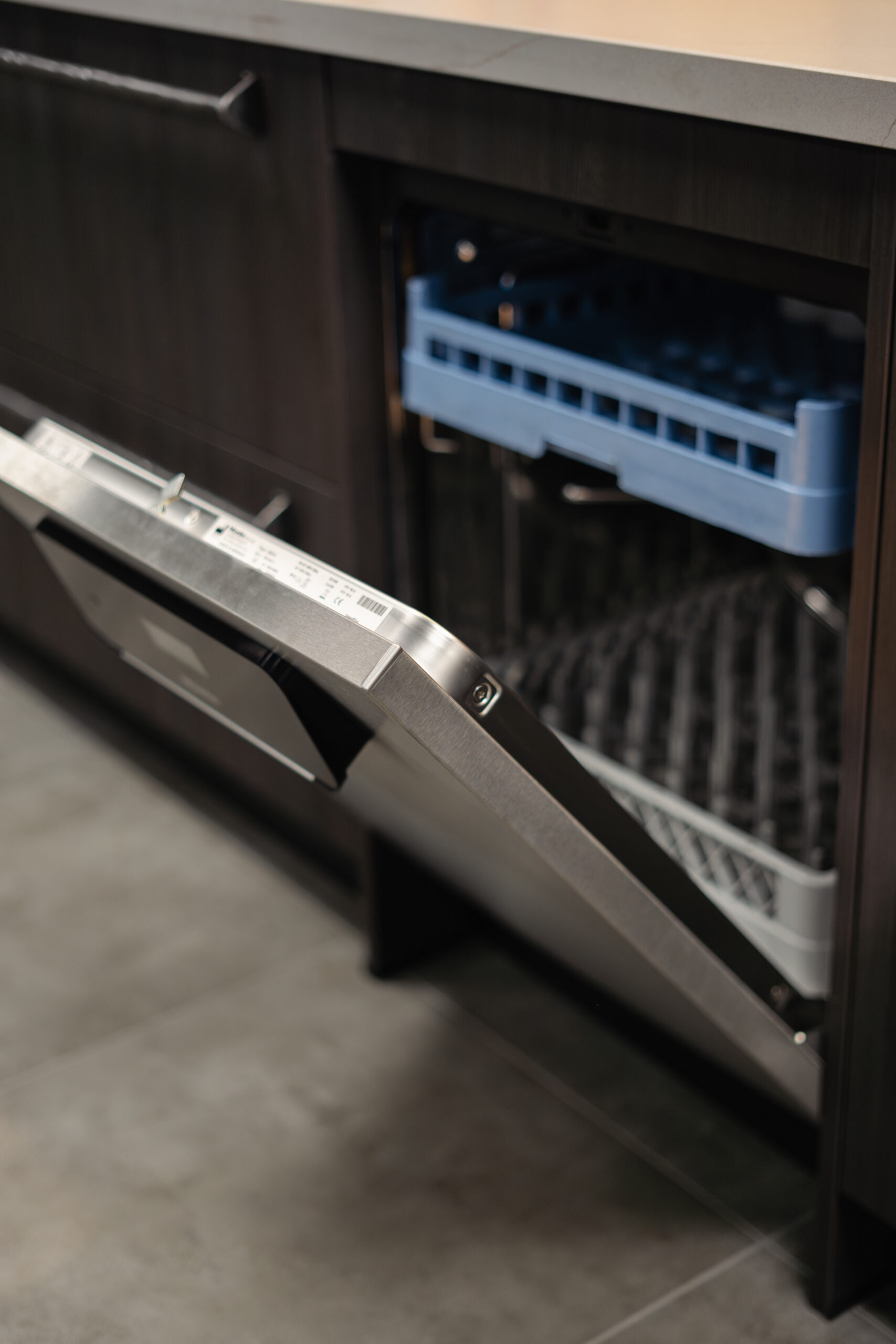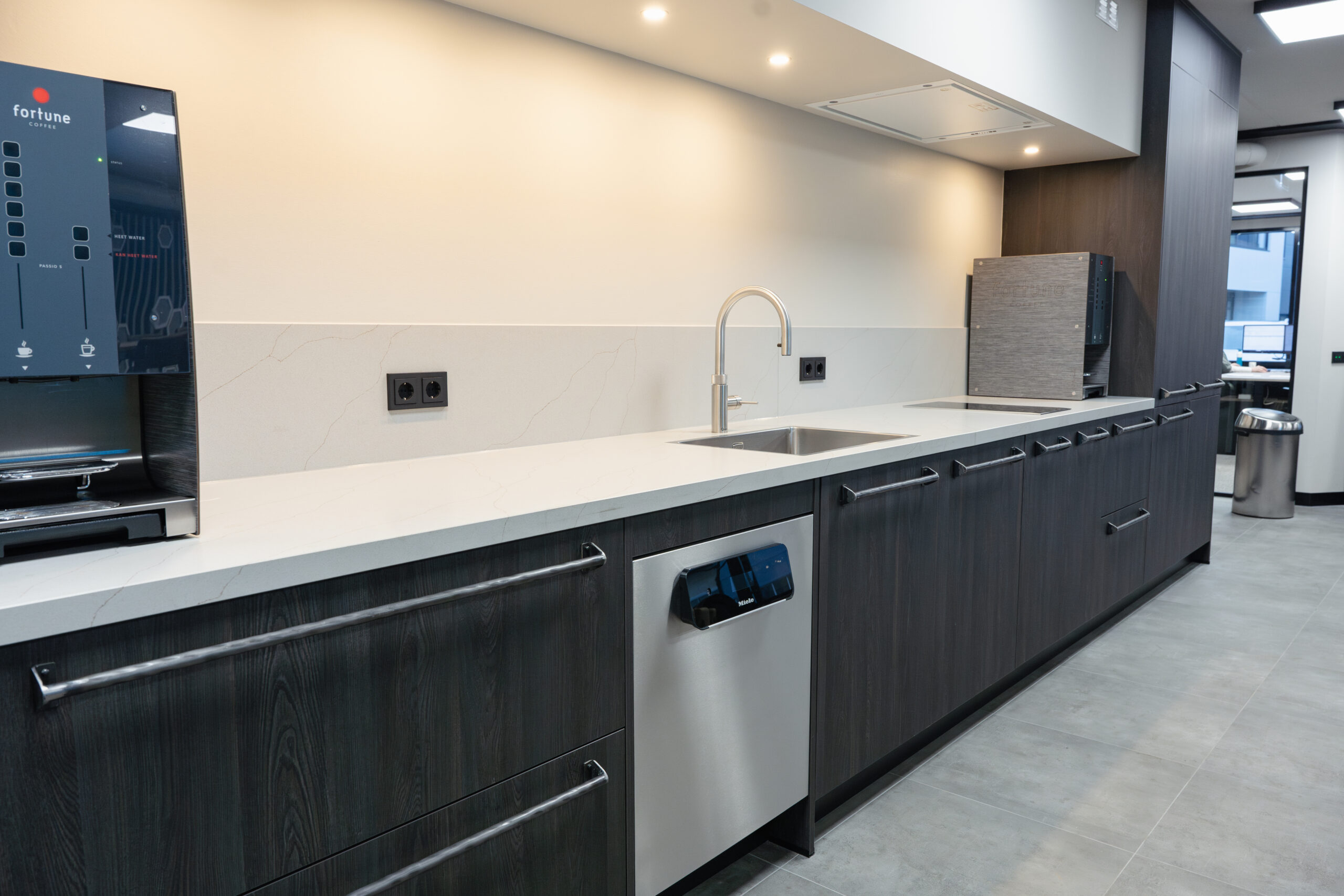 Om het dagelijks gebruik zo praktisch mogelijk te maken, werd er een krachtige Miele semiprofessionele vaatwasser geïnstalleerd, die de afwas in no-time klaar heeft. Daarnaast maken de Siemens combi-oven en inductiekookplaat het mogelijk om eenvoudig en efficiënt te koken, ideaal voor een bedrijvige kantineomgeving.