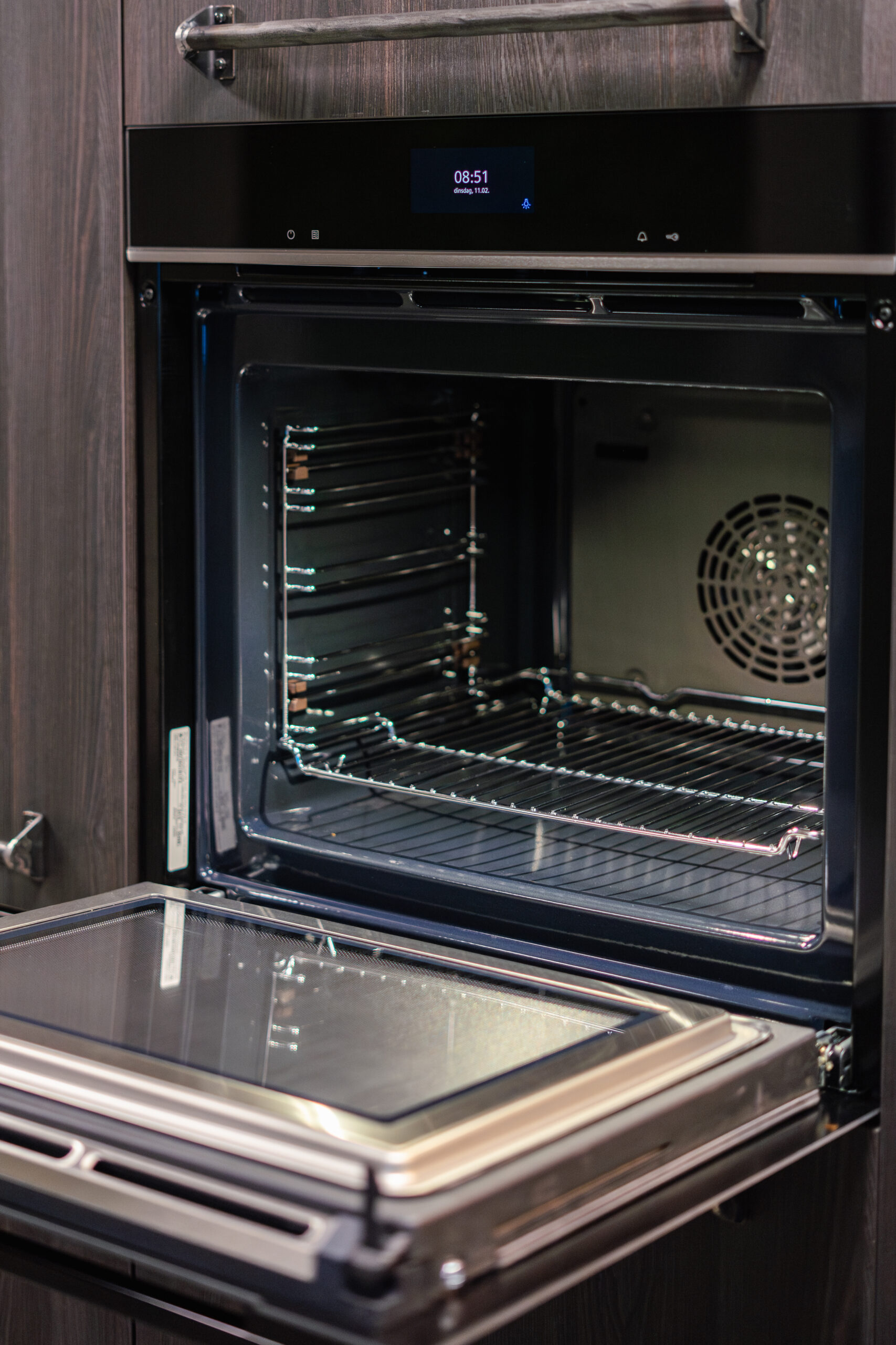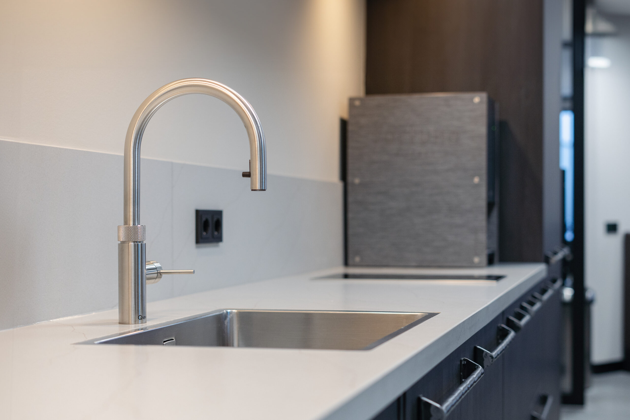 Naast het ontwerp was de keuze van de apparatuur minstens zo belangrijk. Nijborg Staal koos voor hoogwaardige en duurzame apparaten die perfect aansluiten op het intensieve gebruik binnen het bedrijf. Zo zorgen de Liebherr koel-vriescombinaties voor optimale versheid van producten, terwijl de Quooker kokendwaterkraan direct comfort biedt. Voor een strakke en efficiënte afzuiging werd gekozen voor een Novy plafondafzuigkap, die moeiteloos opgaat in het design.